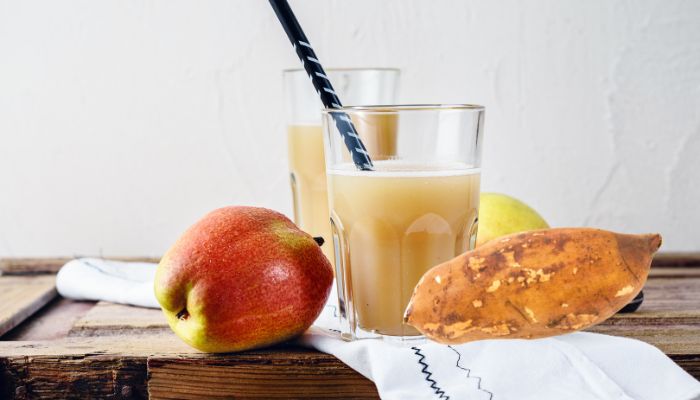 Modo de preparo: nesse sentido, descasque e retire as sementes da maçã, bem como da pera. Descasque também a batata. Em seguida, coloque os ingredientes no liquidificador com a quantidade de água. Por último, acrescente uma colher de café de gengibre em pó e bata por mais alguns segundos. Experimente tomar após as principais refeições do dia.